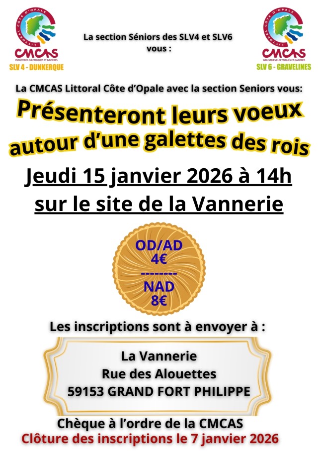 Vous présenterons leurs voeux autour d'une galette des rois, le Jeudi 15 Janvier 2026 à 14h, sur le site de la Vannerie.